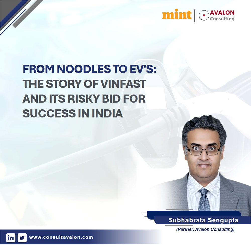 Subhabrata Sengupta, Partner at Avalon Consulting, shared his insights on VinFast’s entry into India’s EV market, featured in Mint.
